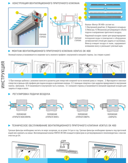 Оконный приточный вентиляционный клапан Ventus OK 400 белый